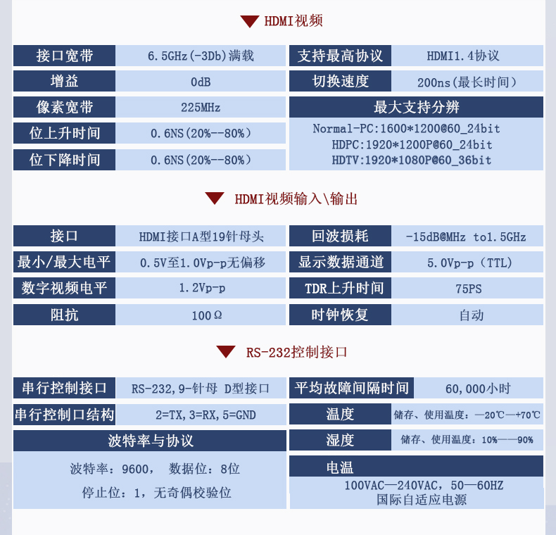 帶長線驅(qū)動功能--- HDMI及DVI輸入端帶數(shù)字均衡調(diào)整電路,輸出帶信號預(yù)加重增強(qiáng)電路,使信號能進(jìn)行更長距離傳輸,輸入輸出都可超過35米距離;